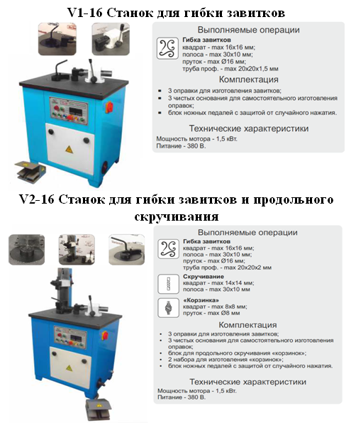 V1-16 и V2-16 Станки для гибки завитков и продольного скручивания