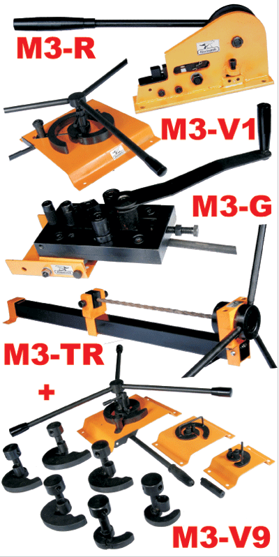Набор оборудования, благодаря наличию оправок, шаблонов и мощных рычагов позволяет с хорошим качеством изготавливать множество узоров из металла аналогичных кованным. Оснастка рассчитана для работы с заготовками из горячекатаной стали типа Ст.3.
