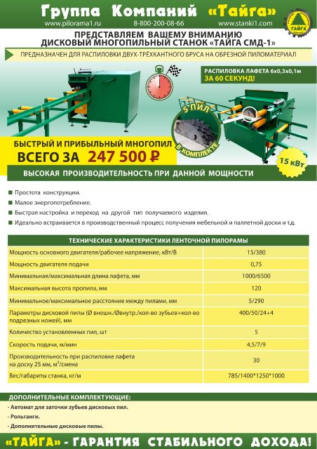 Дисковый многопильный станок "ТАЙГА СМД-1"