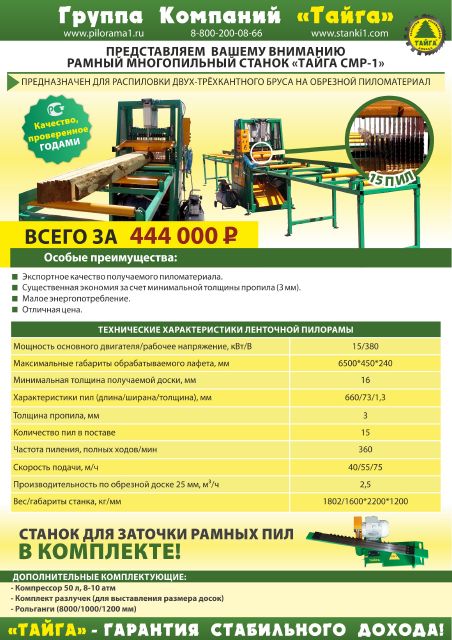 Рамный многопильный станок "ТАЙГА СМР-1"