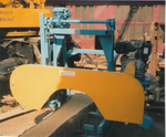 Япония, двигатель бензиновый 10 кВт, запуск двигателя электростартером. Диаметр распиливаемого бревна до 0,6 м, ручное перемещение каретки.